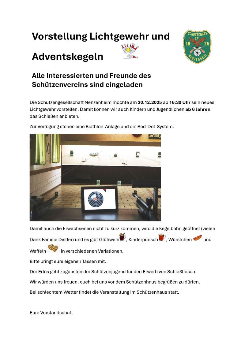 Vorstellung des neuen Lichtgewehrs, Adventskegeln & Adventsfenster in Nenzenheim