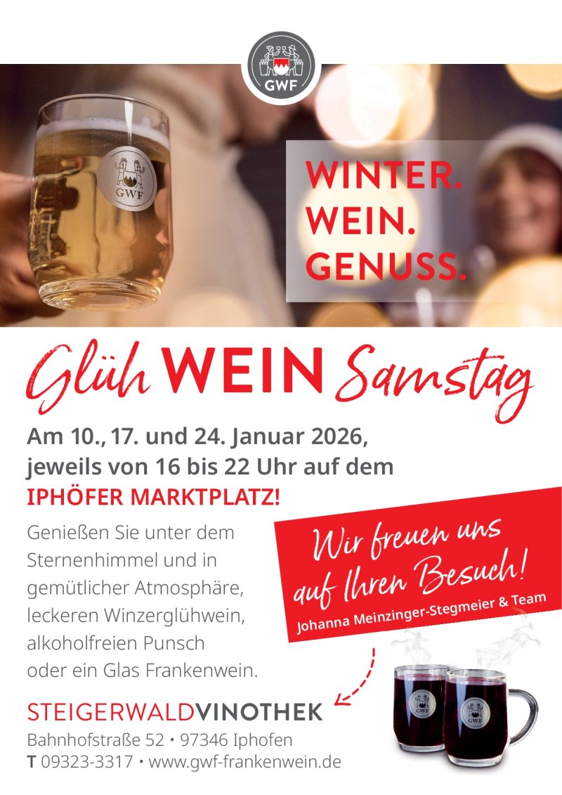 Glühweinsamstage: Genießen Sie unter freiem Sternenhimmel und in gemütlicher Atmosphäre, leckeren Winzerglühwein, alkoholfreien Punsch oder ein Glas Frankenwein.