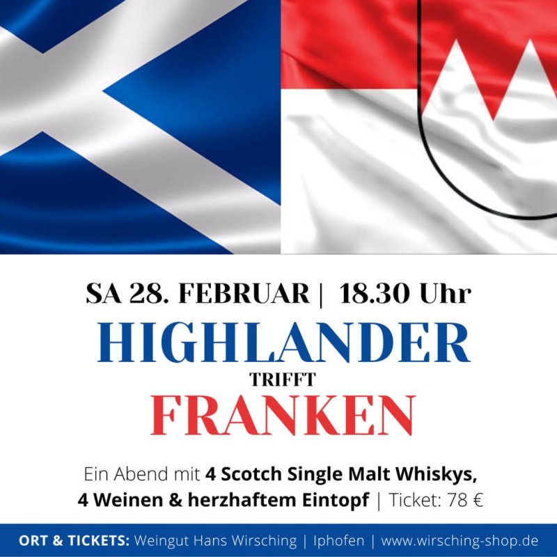 Ein Abend mit vier Scotch Single Malt Whiskys, vier Weinen und einem herzhaften Eintopf. Freuen Sie sich auf Genuss, Kultur und Geschichte!