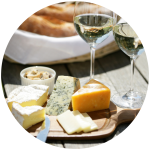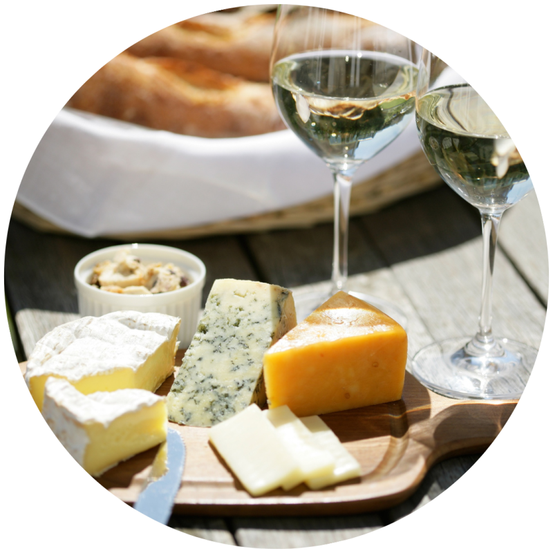 Müller Thurgau trifft auf unterschiedliche Käsesorten auf dem großen Brotzeitbrett - direkt von unserem fränkischen Lieferanten und garantiert lecker!